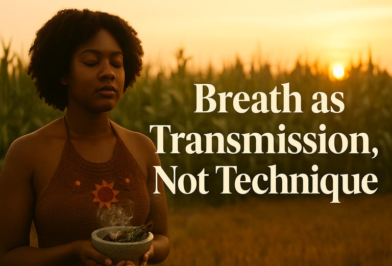Discover how breath becomes a living transmission — not a technique — through nature, stillness, and remembrance. When the wind joined my breath in the cornfield, I realized breathwork isn’t a technique — it’s a transmission. This reflection explores how to experience breath as relationship, not repetition, and includes a guided journaling invitation.